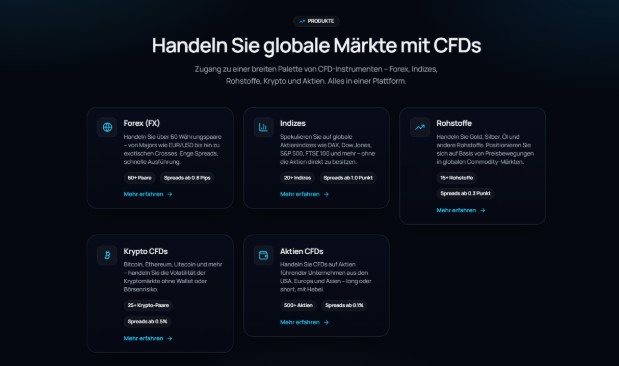 Forex bildet den Kern des Angebots, mit einer Auswahl an Haupt- und Nebenwährungspaaren. Dies bietet vielen Tradern einen vertrauten Einstiegspunkt und gleichzeitig genügend Raum, um weitere Märkte zu erkunden. Indizes, die an große europäische und US-amerikanische Märkte gekoppelt sind, ermöglichen zudem einen breiteren Blick auf wirtschaftliche Entwicklungen und zeigen, wie sich ganze Regionen entwickeln.
